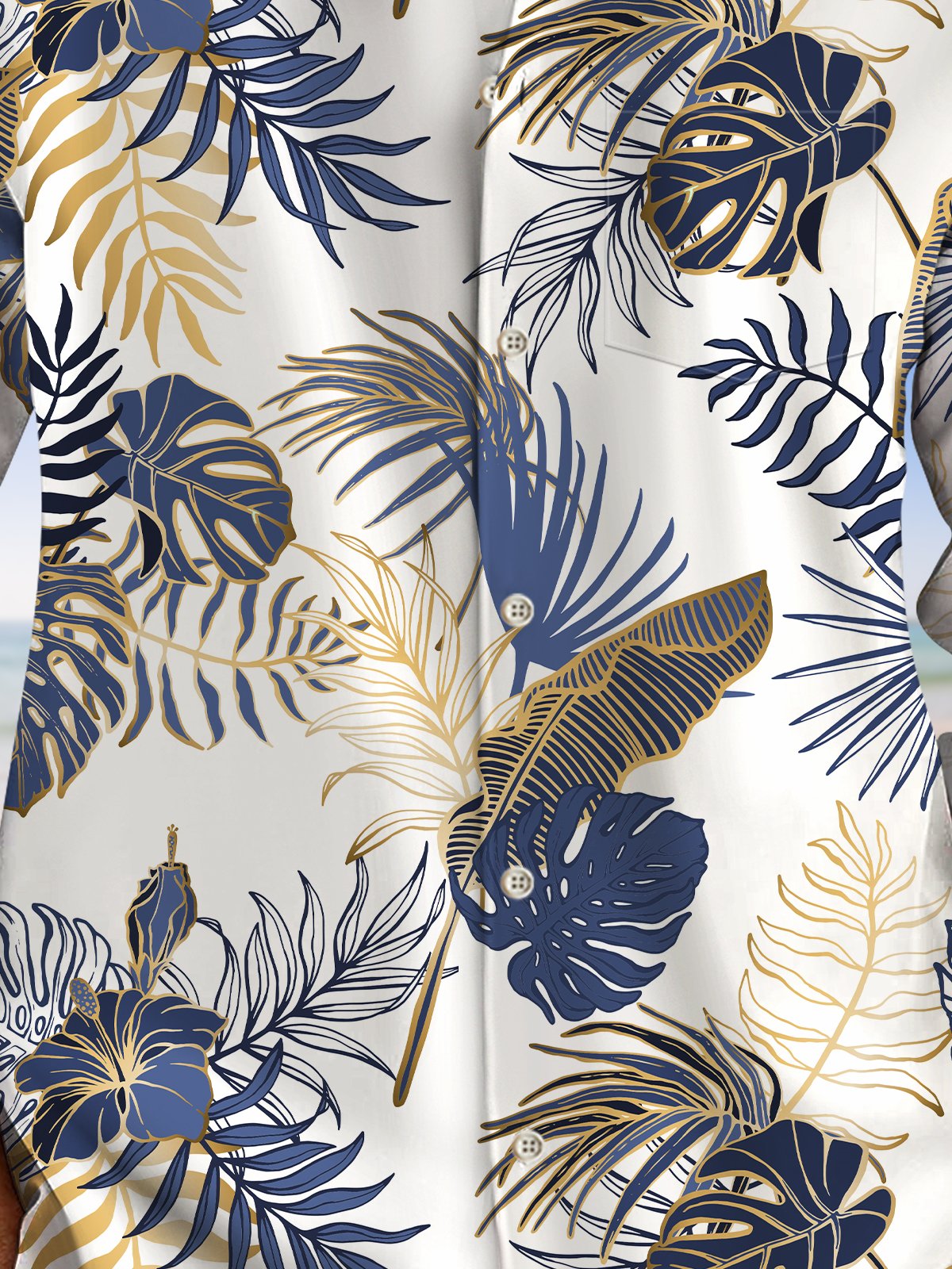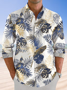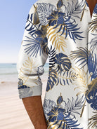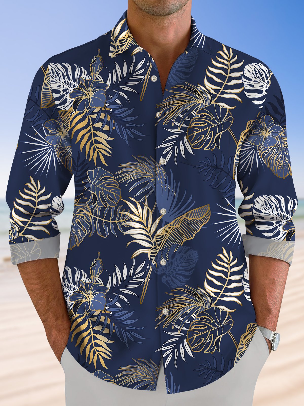 Alohadaddy Men's Hawaiian Resort Tropical Floral Gold Beach Aloha Long Sleeve Shirt