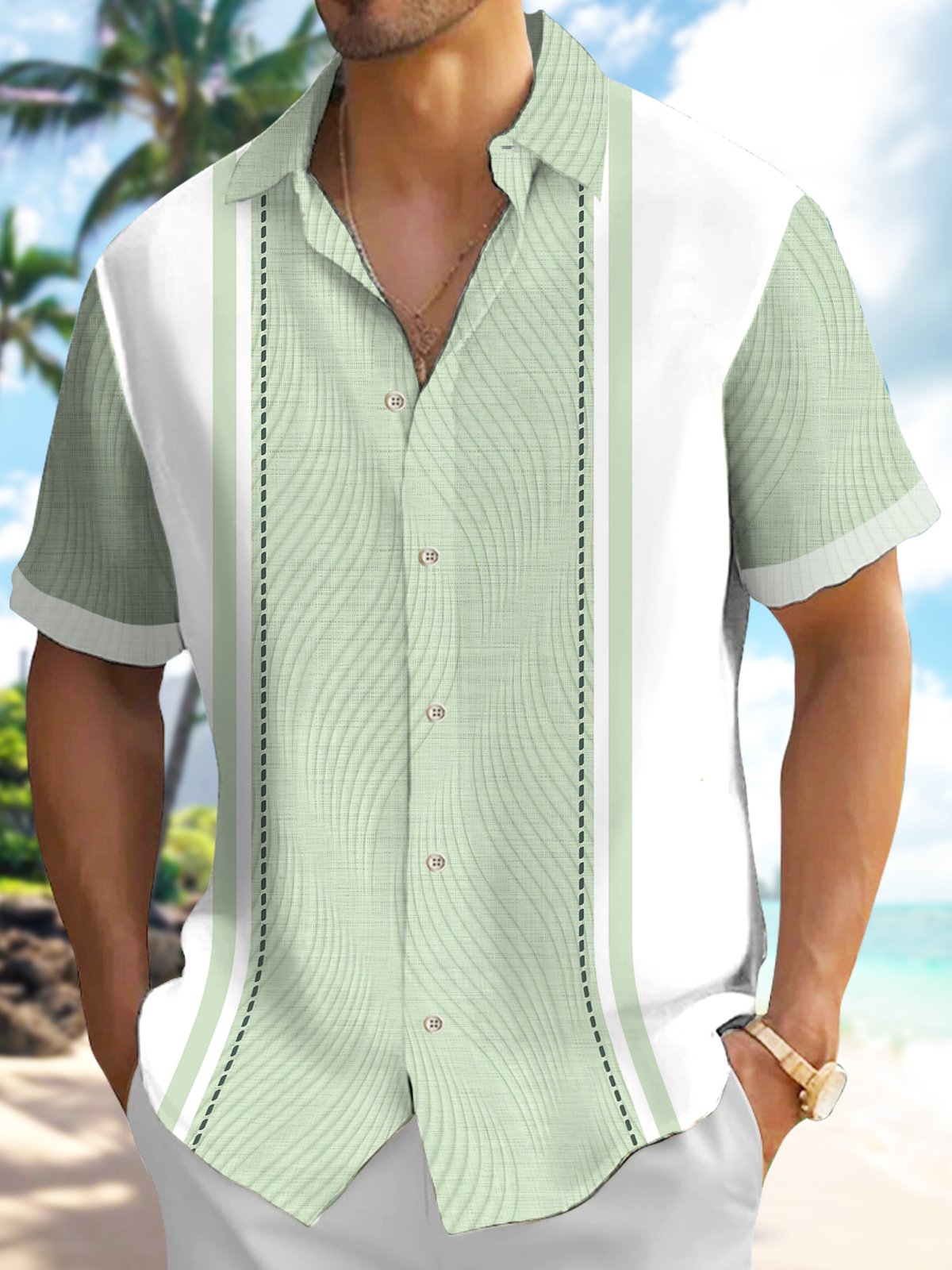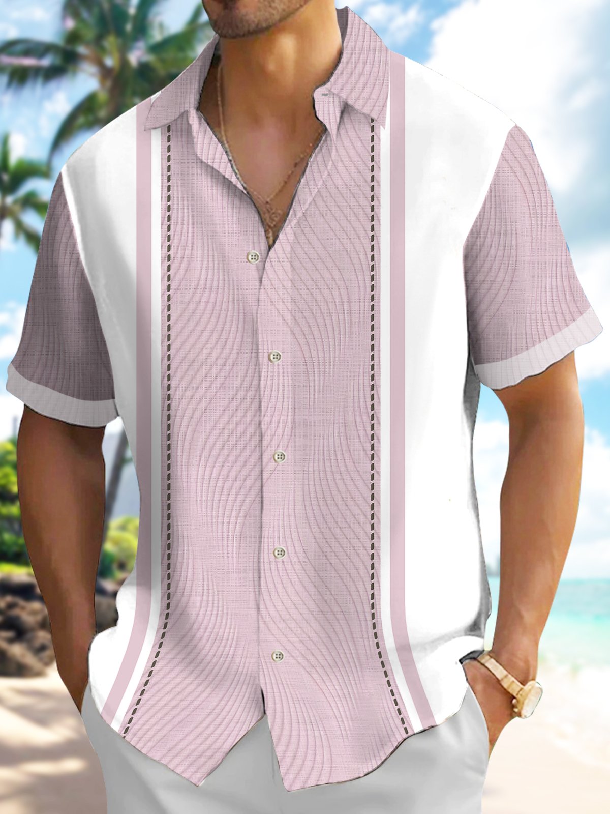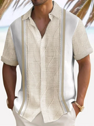 Alohadaddy Men's Vintage Geometric Textured 3D Bowling Print Button Pocket Short Sleeve Shirt