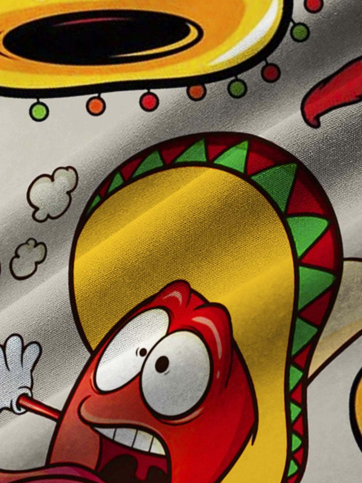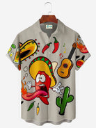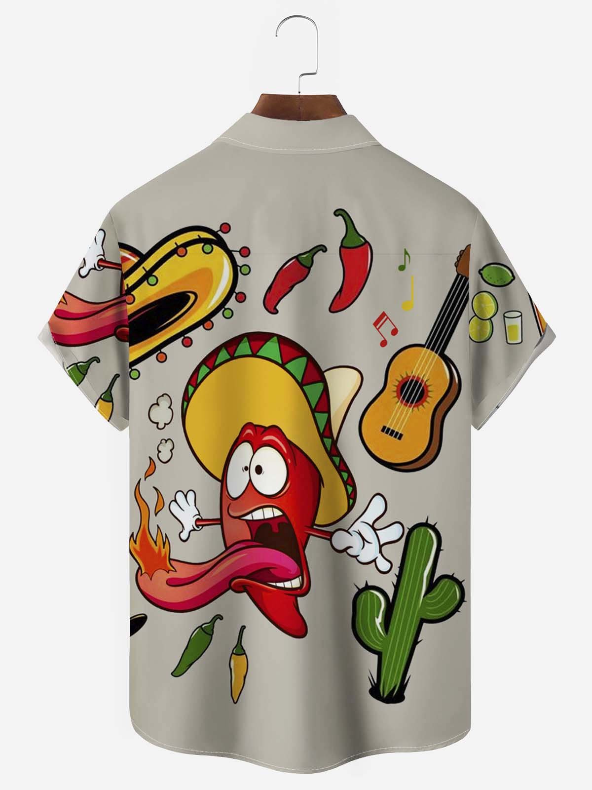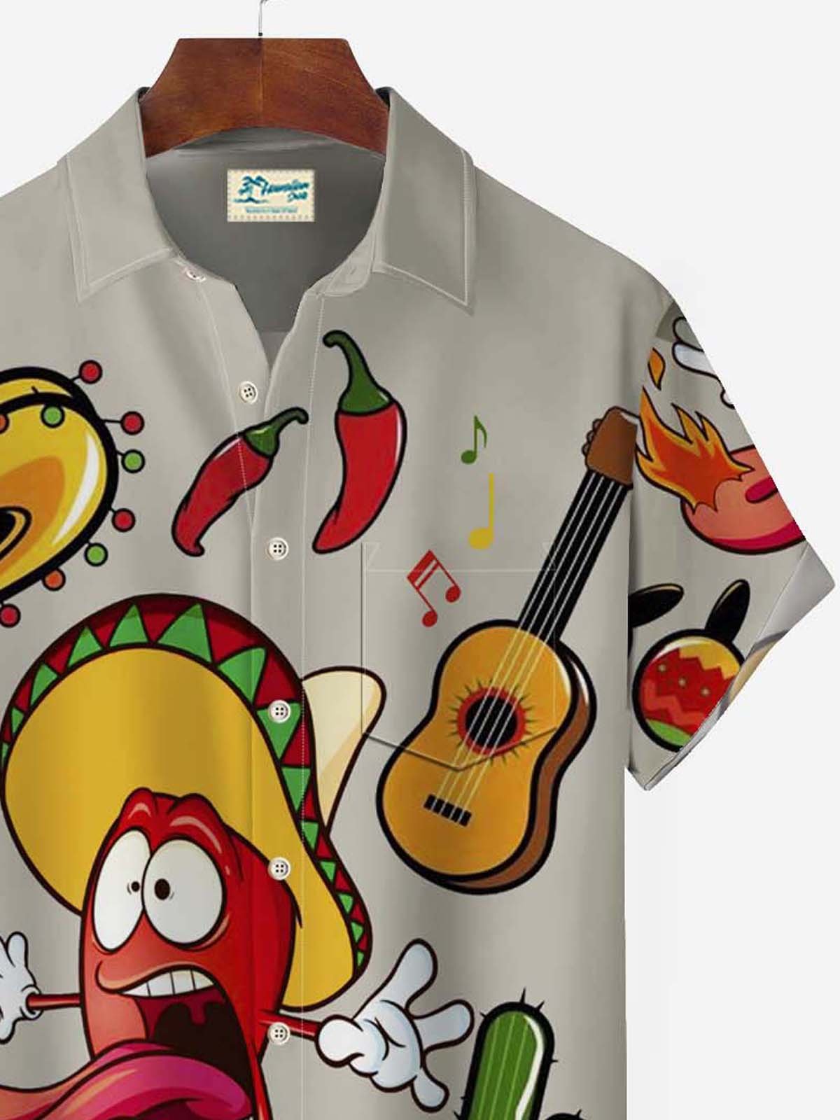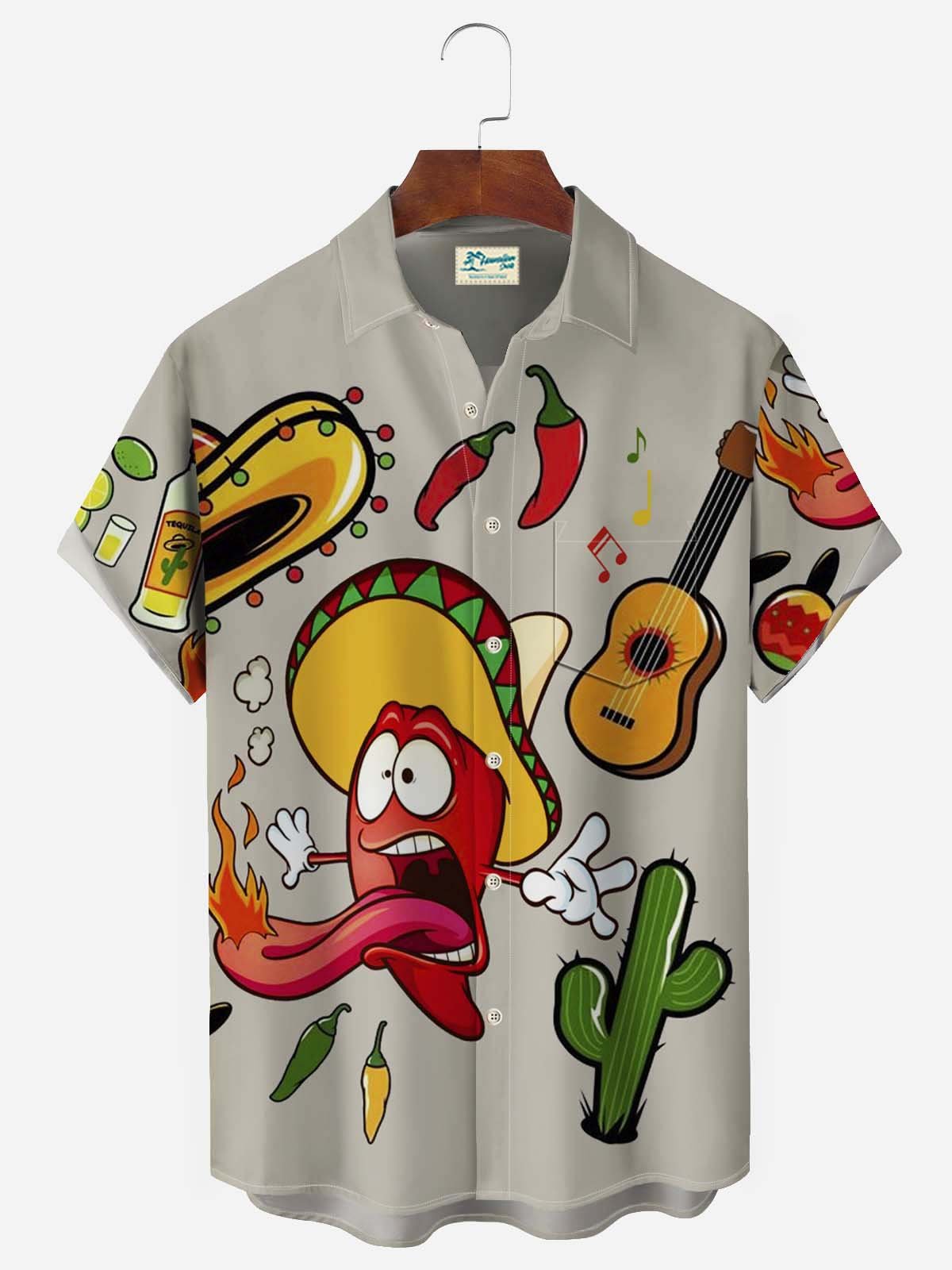 Alohadaddy Mexican Cinco de Mayo Khaki Men's Hawaiian Shirts Chipotle Salad Stretch Aloha Camp Pocket Shirts