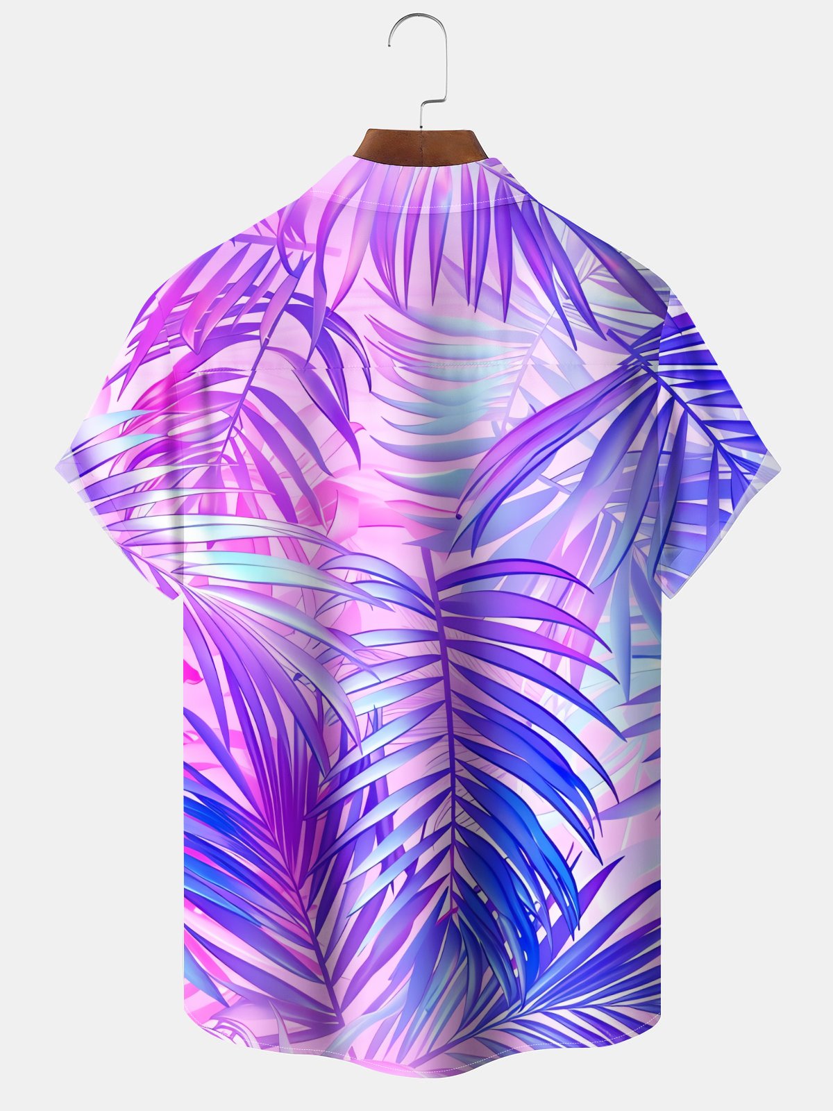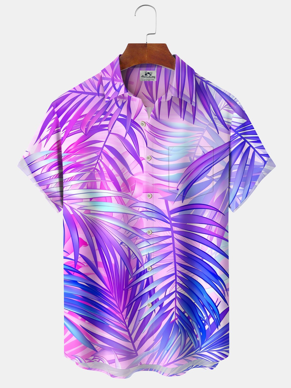 Alohadaddy Palm Tree Leaves Colorful Art Print Chest Pocket Moisture Wicking Large Size Casual Hawaiian Short Sleeve Shirt
