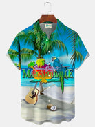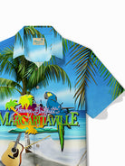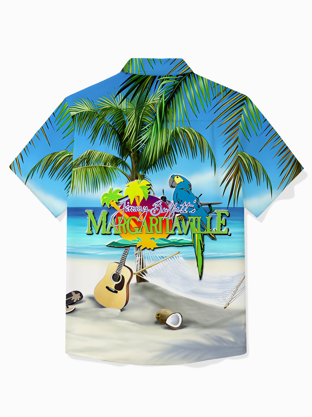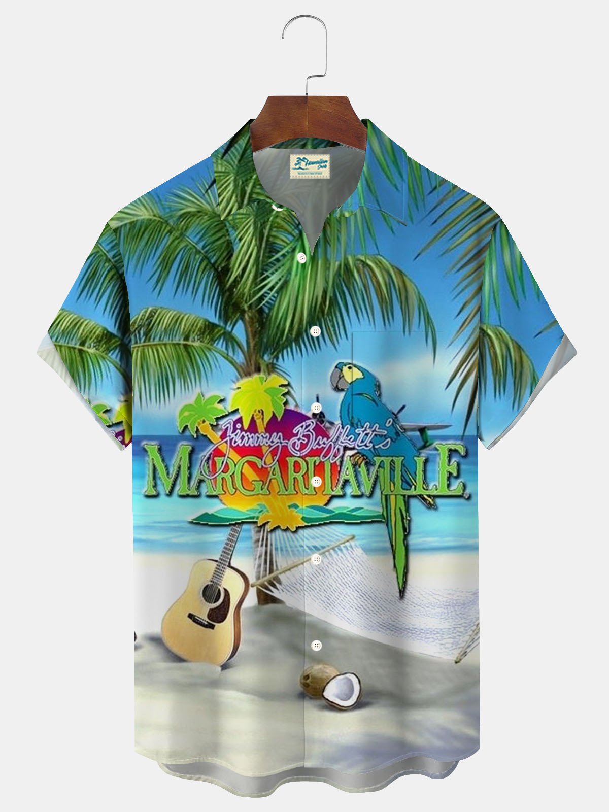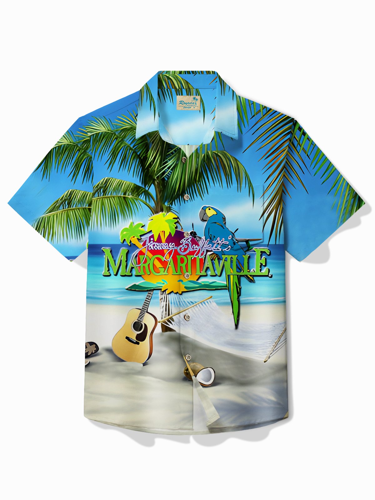Alohadaddy Parrot Guitar Print Men's Button Pocket Short Sleeve Lapel Hawaiian Shirt