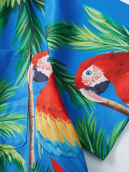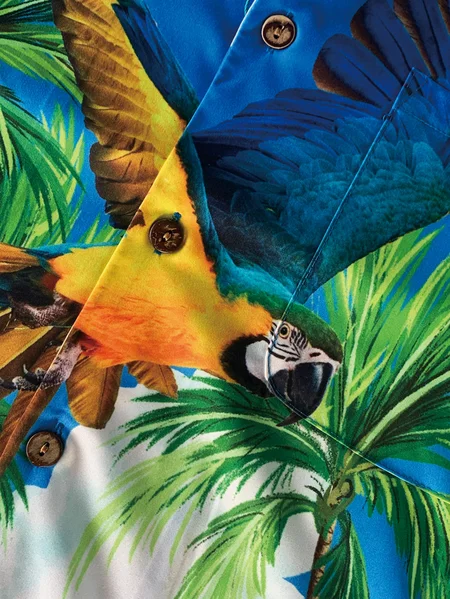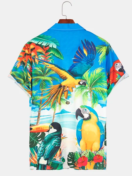Alohadaddy Parrots Casual Cotton-Blend Printed Shirts & Tops