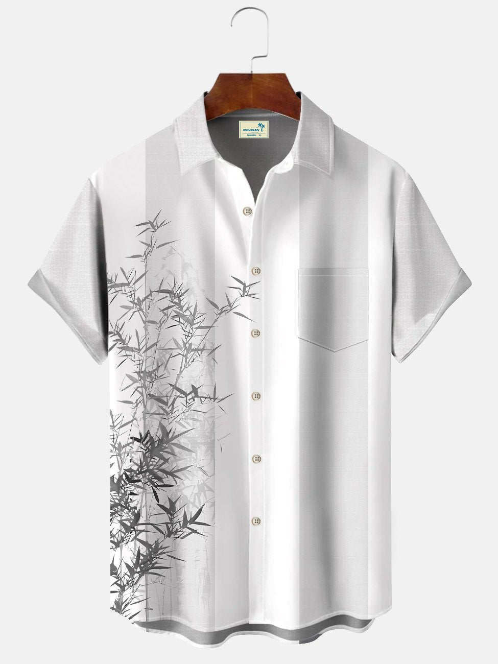 Alohadaddy Plant Bamboo Men's Pocket Button Casual 50S Bowling Commuter Short Sleeve Shirt