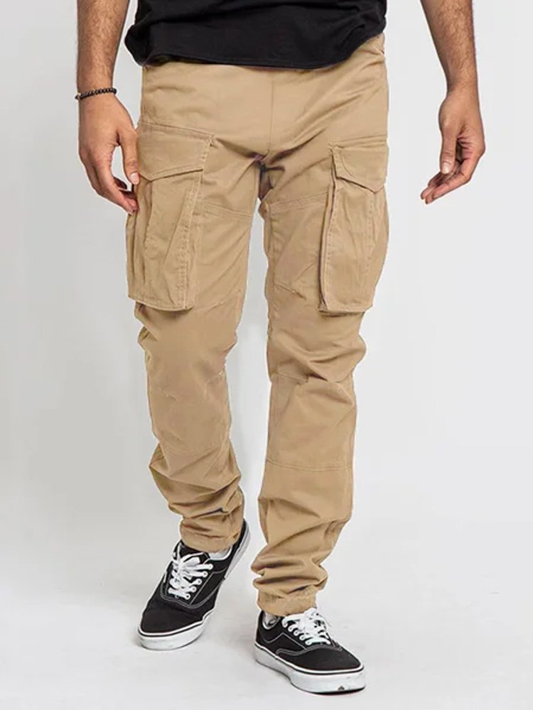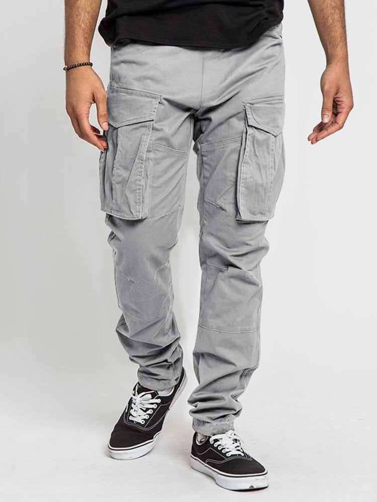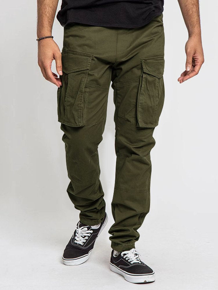 Alohadaddy Plus Size Men's Cargo Pants Solid Multi-Pocket Casual Pants