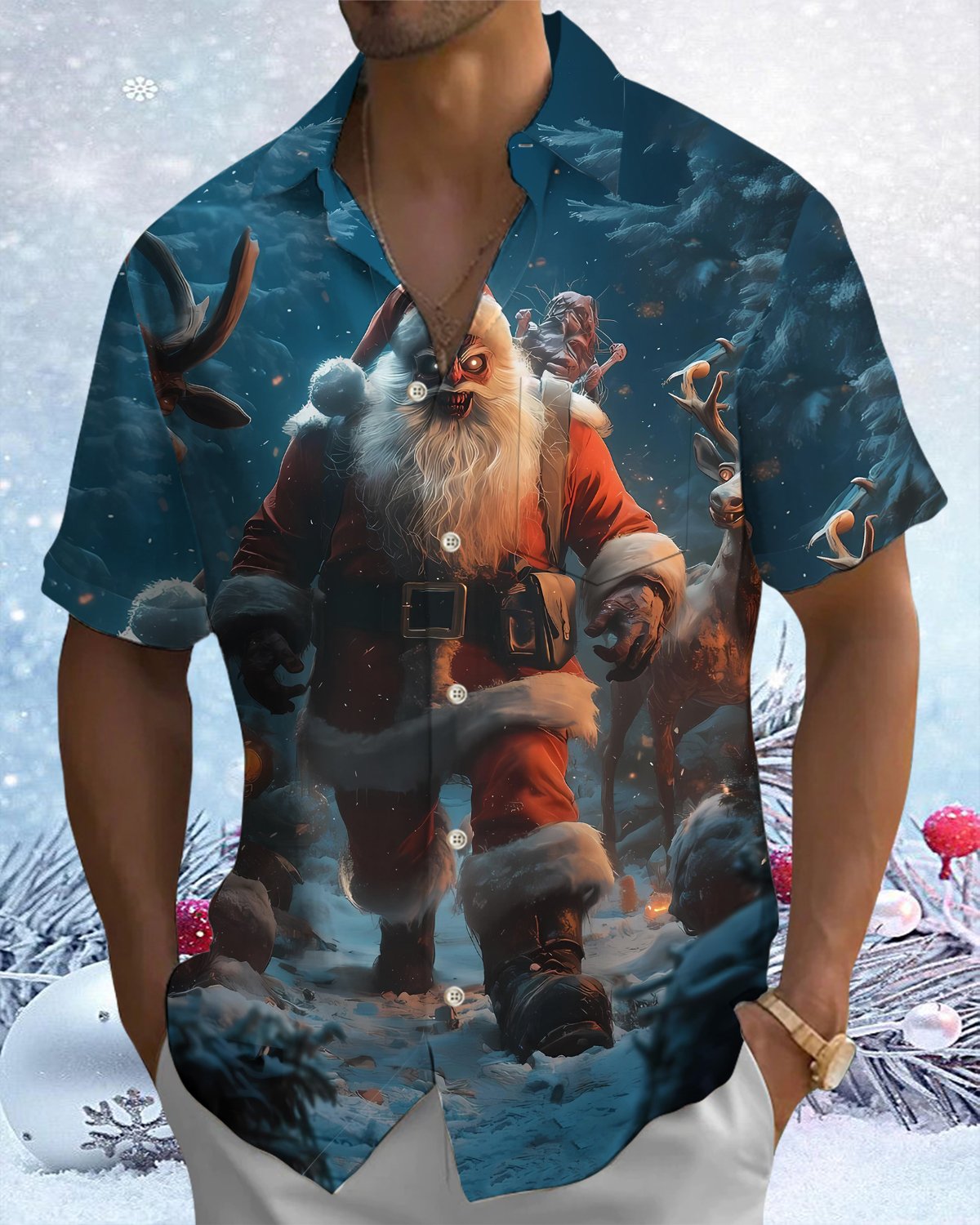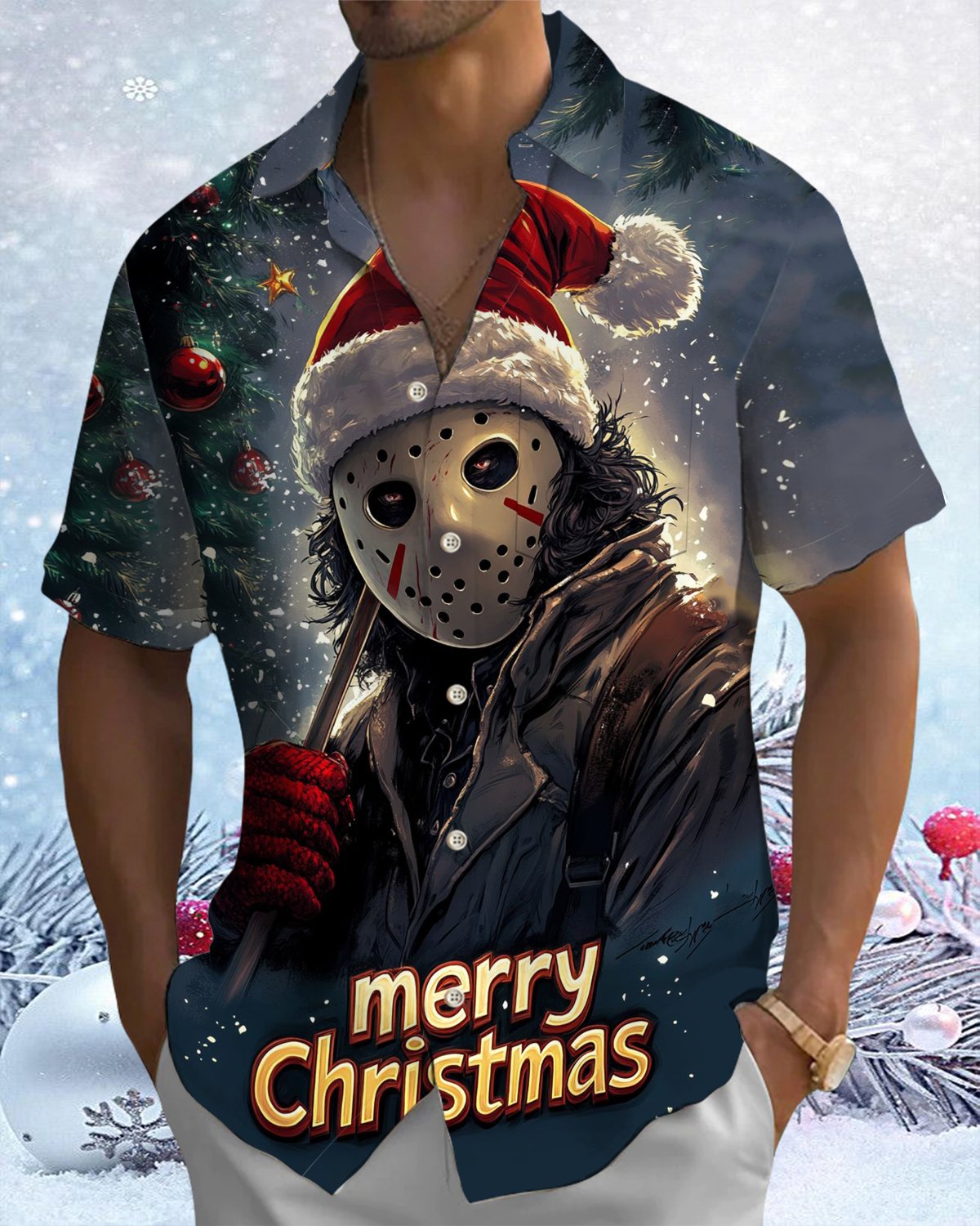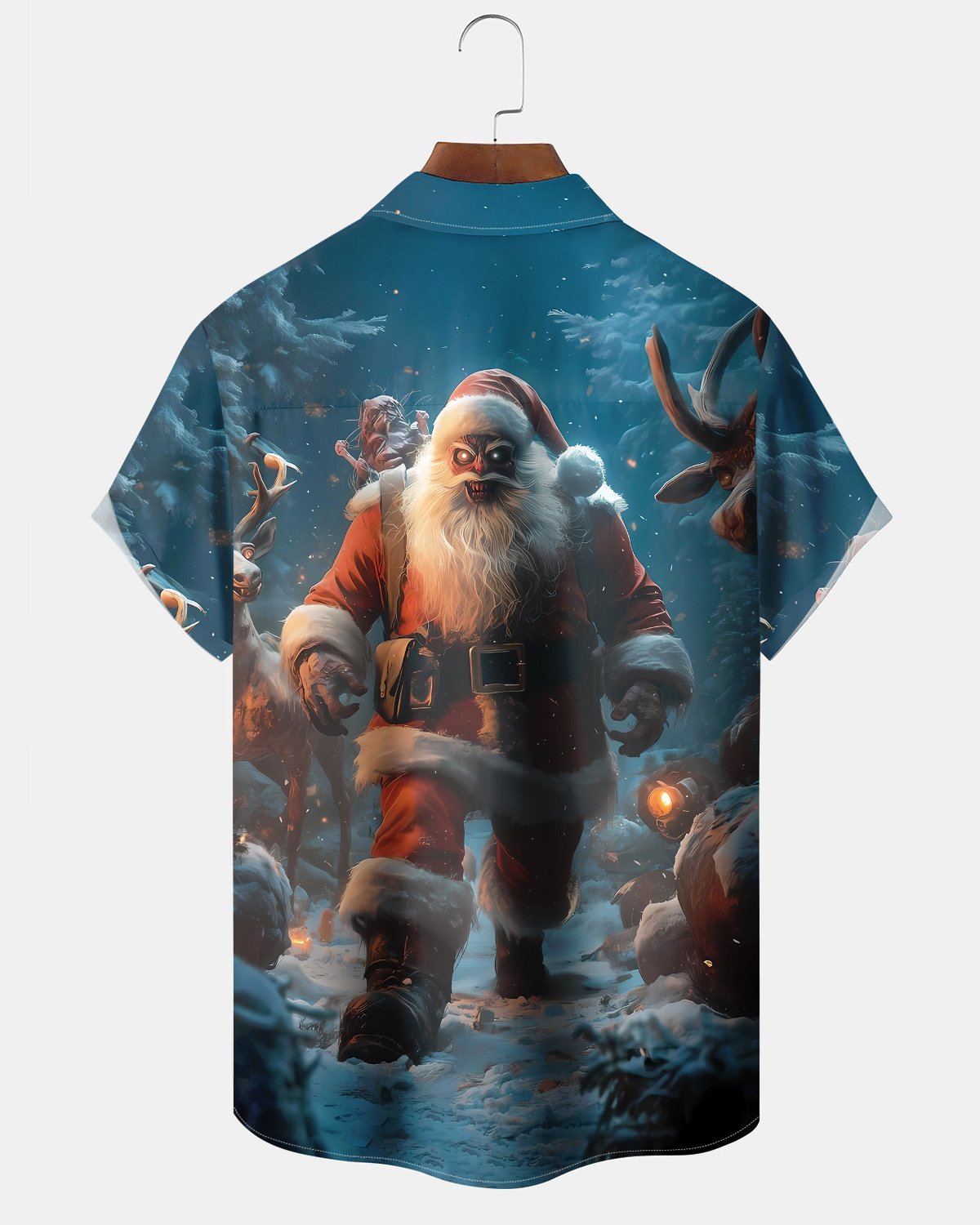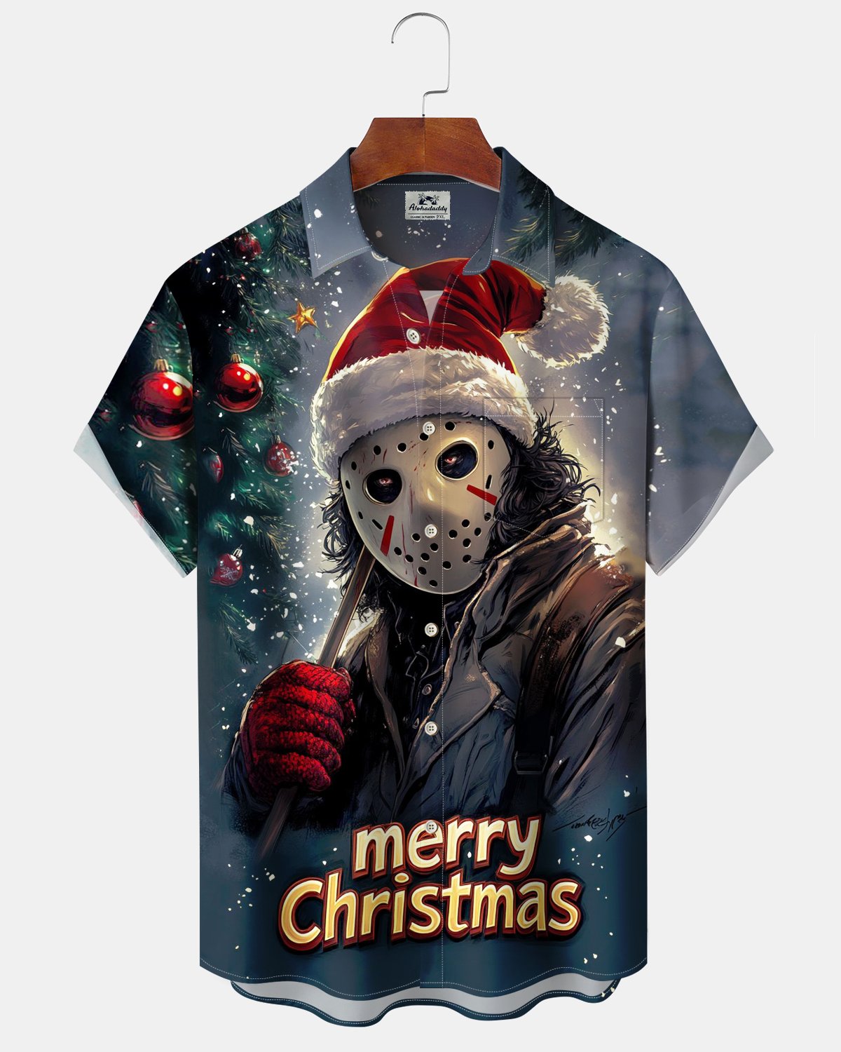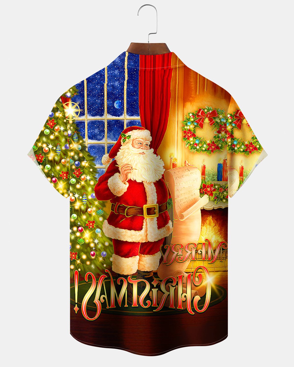 Alohadaddy Retro Geometric Gold Floral Print Men's Button Pocket Short Sleeve Shirt