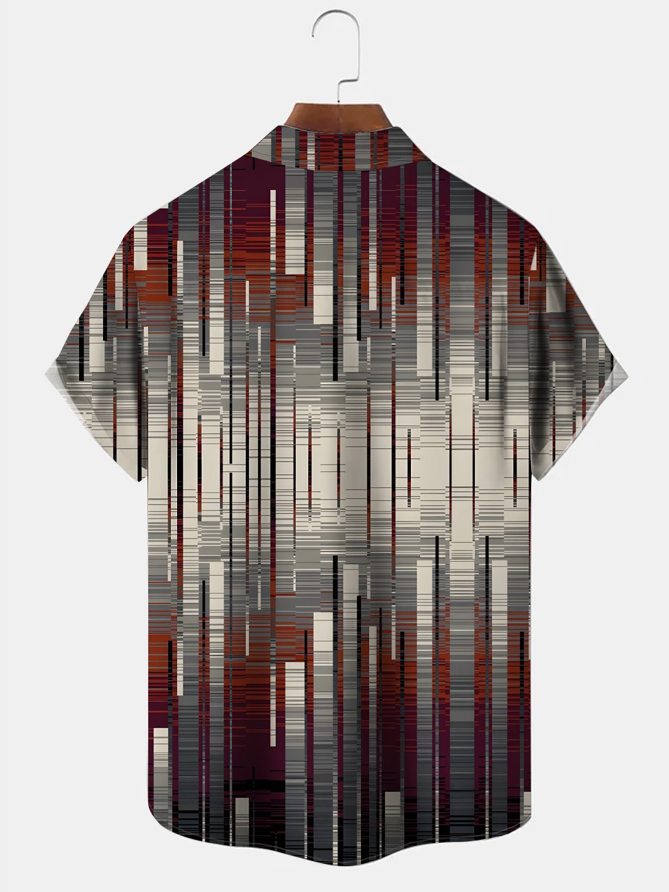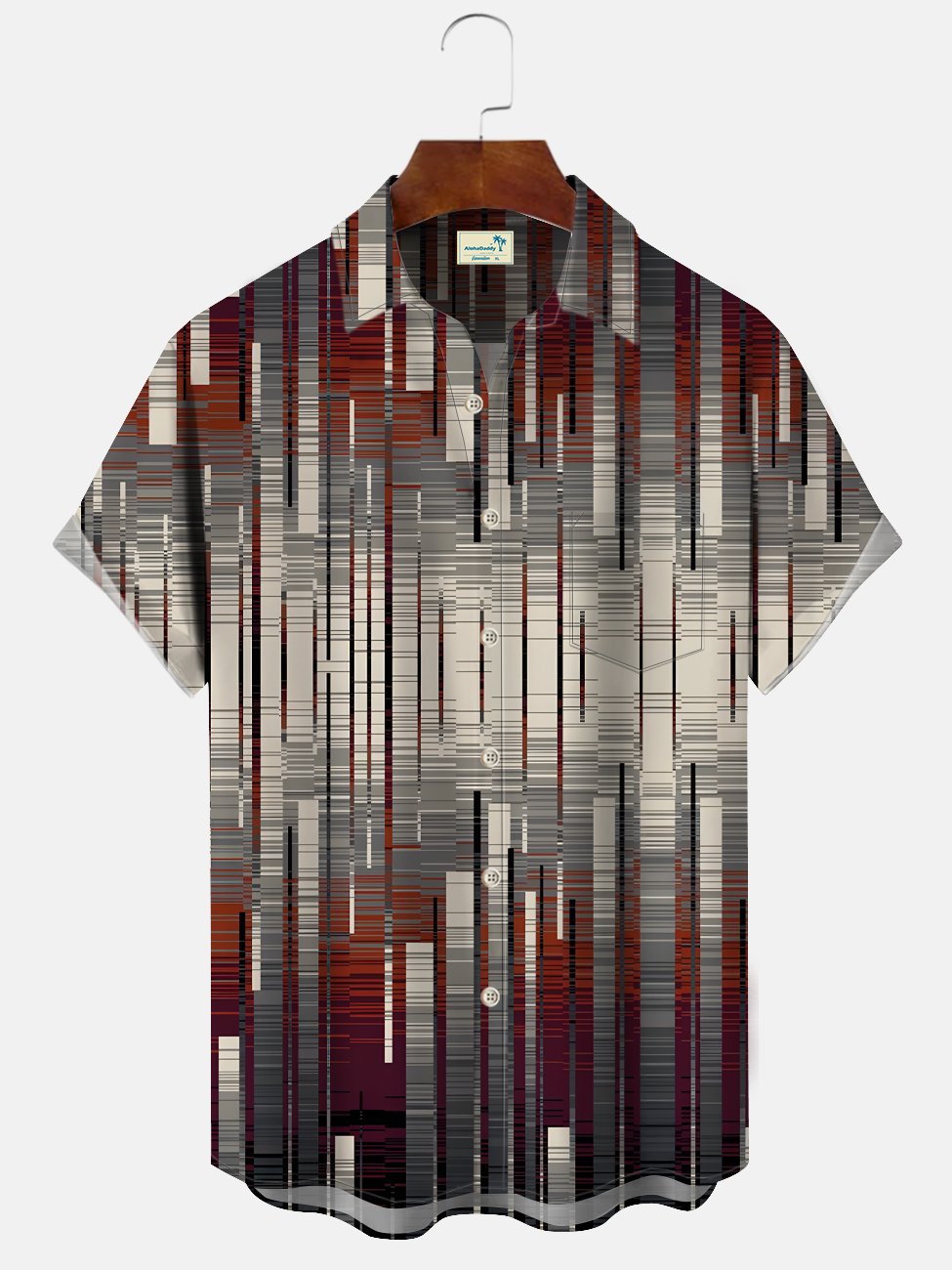 Alohadaddy Retro Geometric Texture 3D Print Men's Button Pocket Short Sleeve Shirt Big & Tall