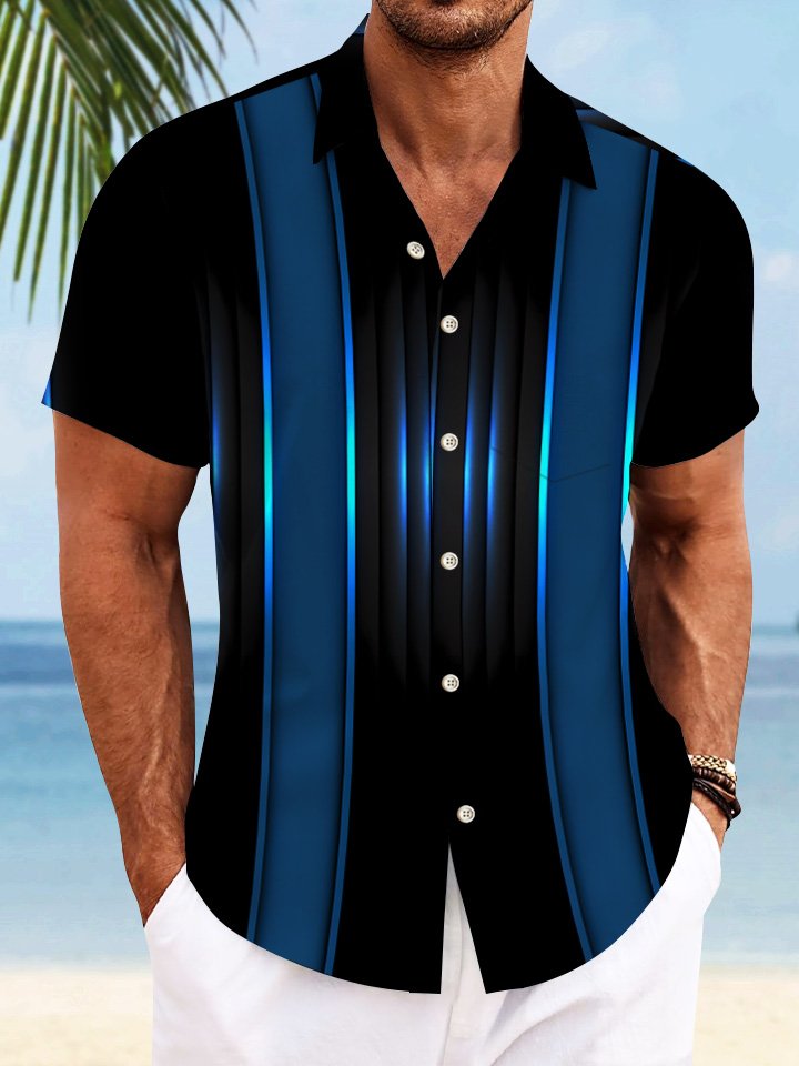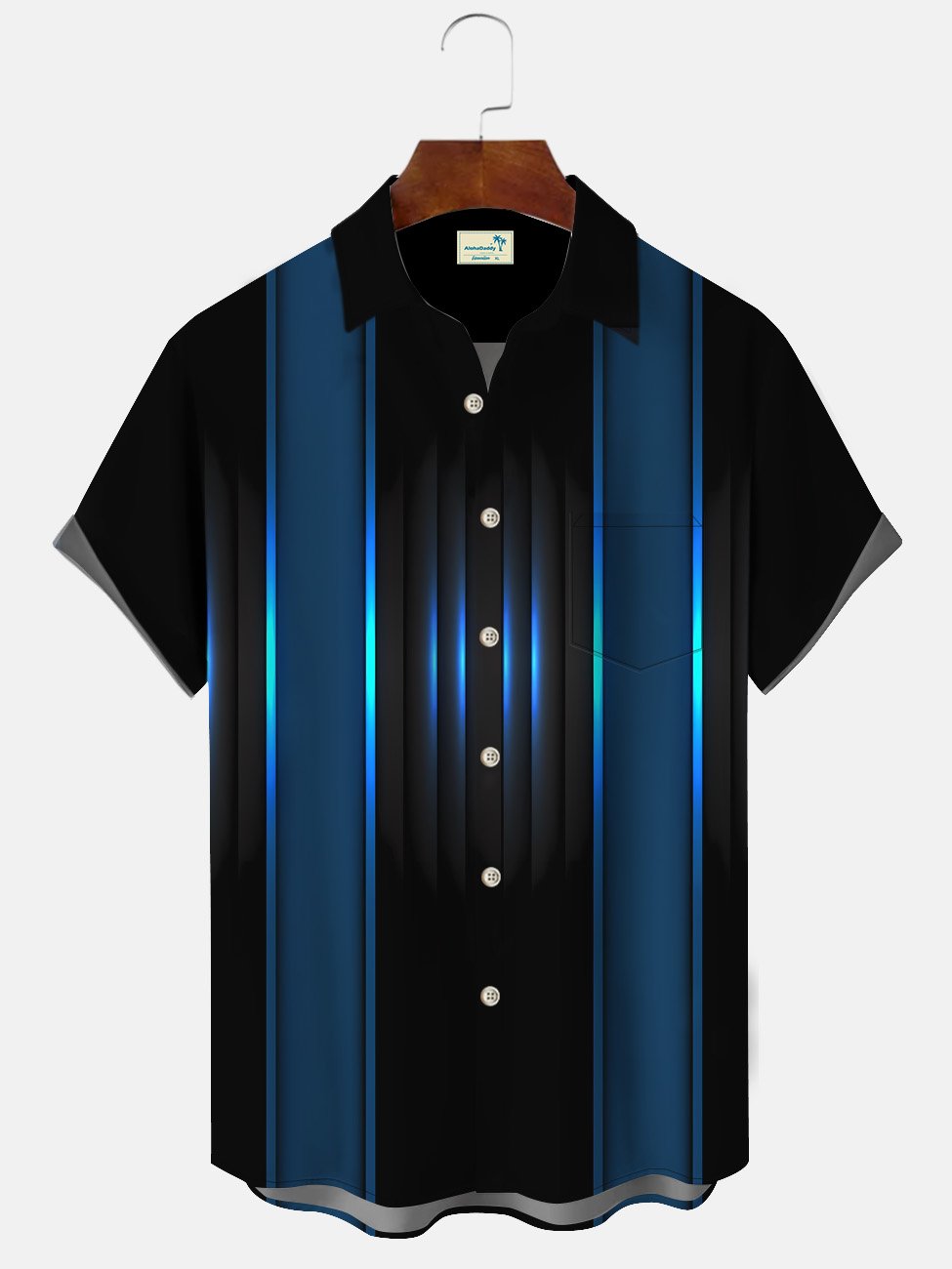 Alohadaddy stripes geometric fluorescent gradient pockets buttons casual 50S bowling commuting short sleeve shirt