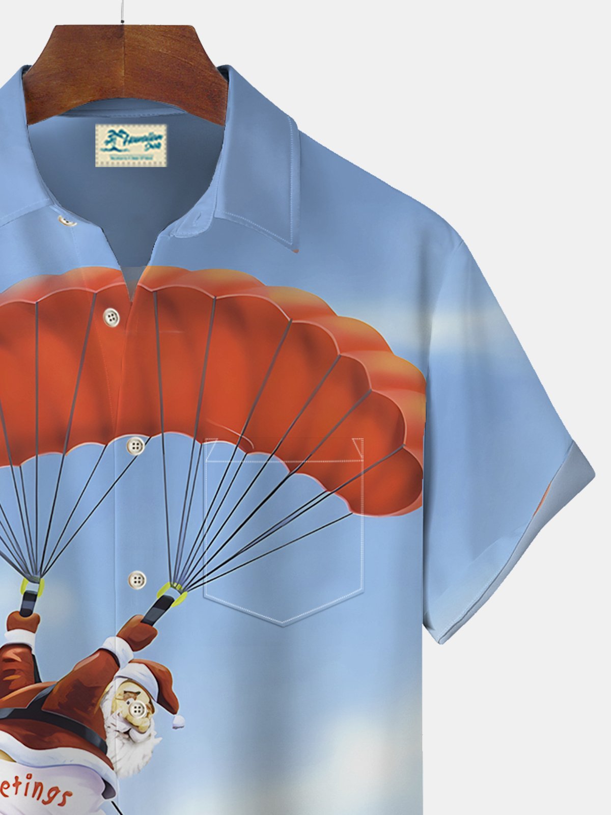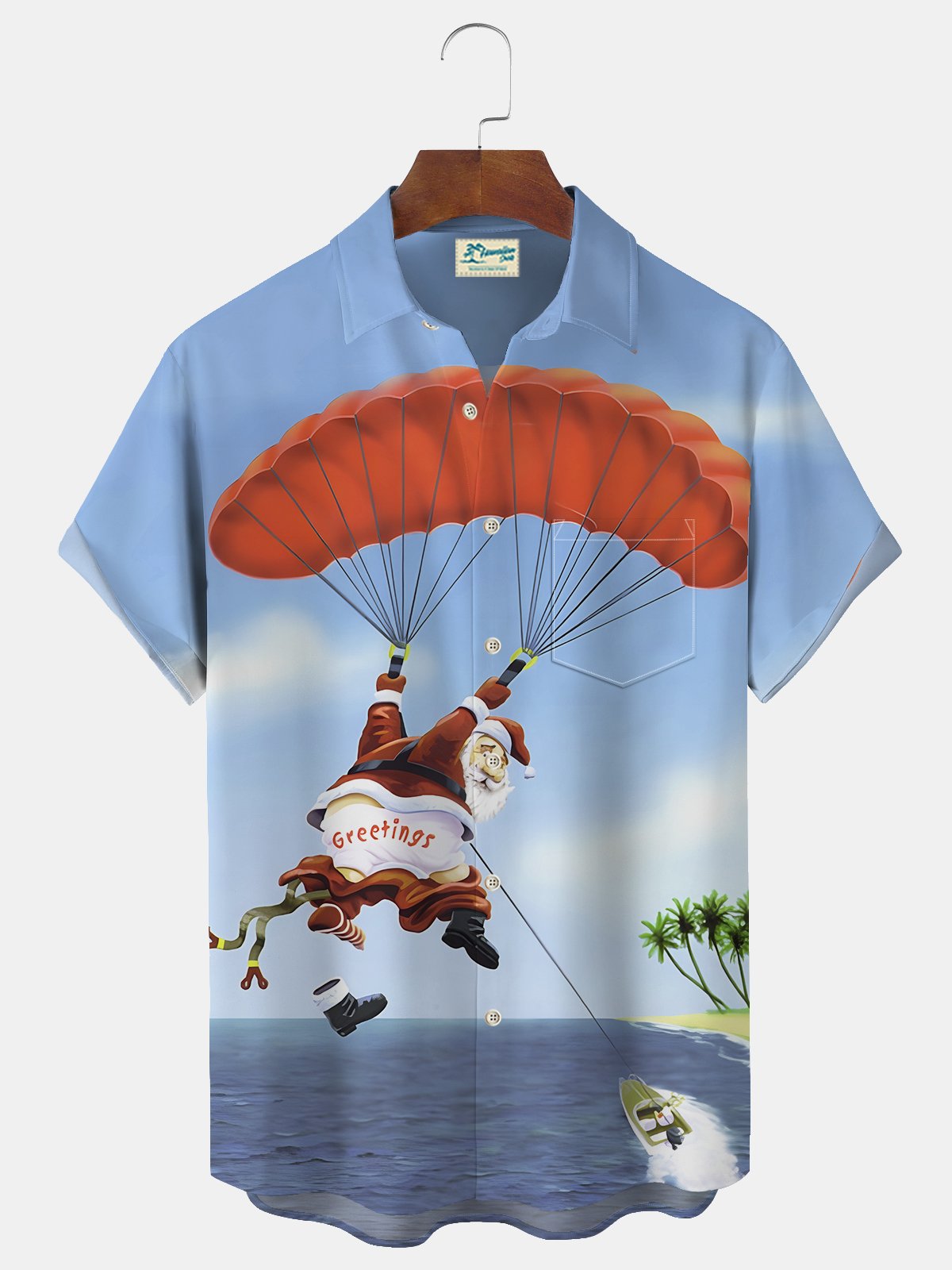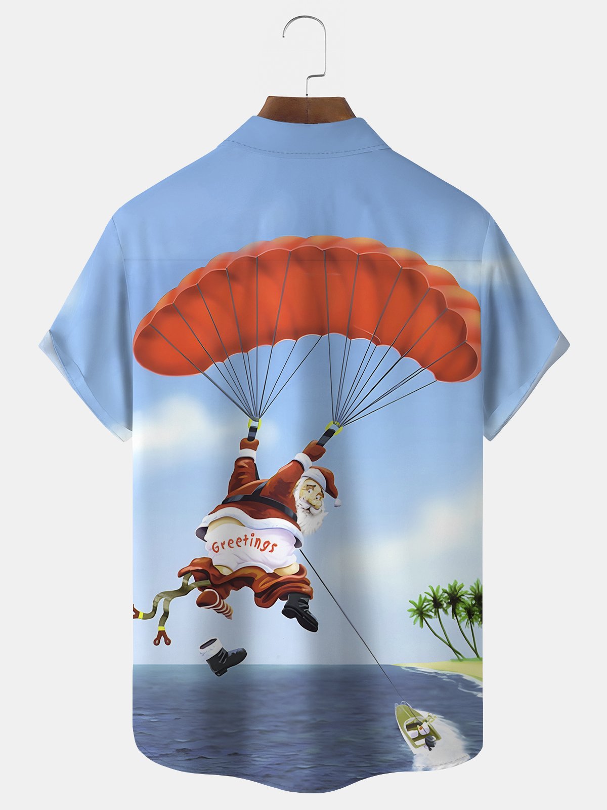 Alohadaddy Summer Christmas Santa Print Beach Men's Hawaiian Oversized Shirt with Pockets
