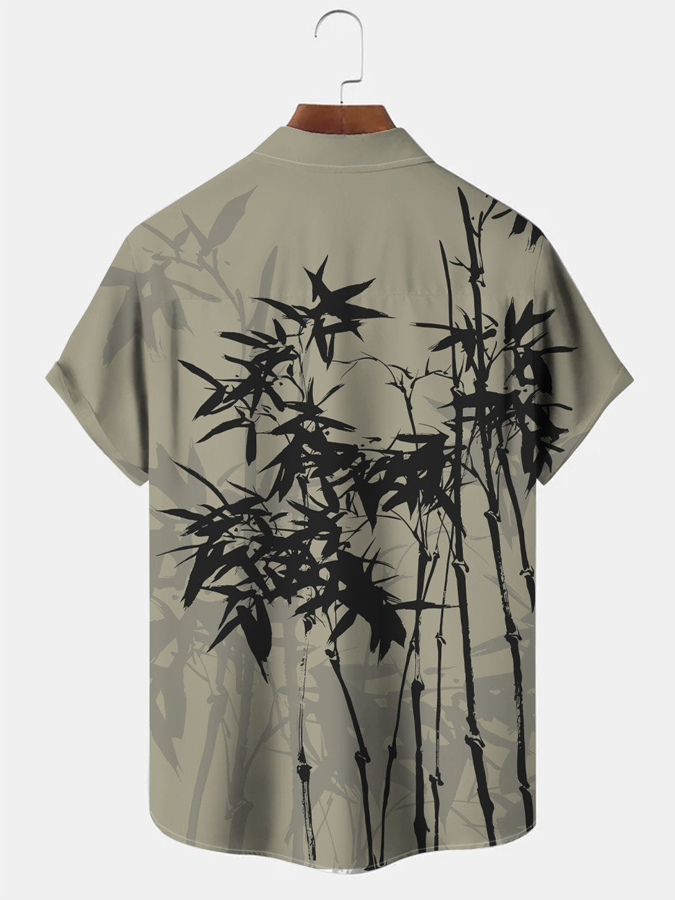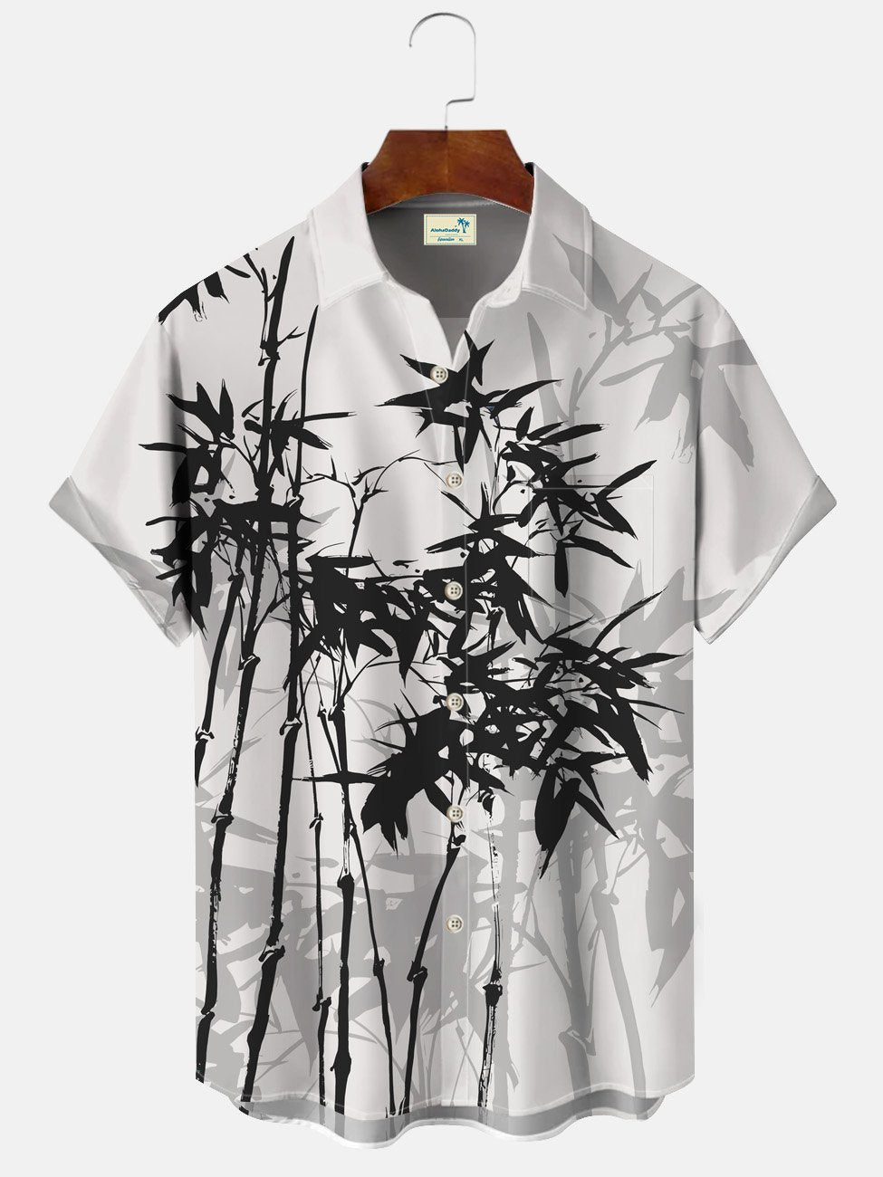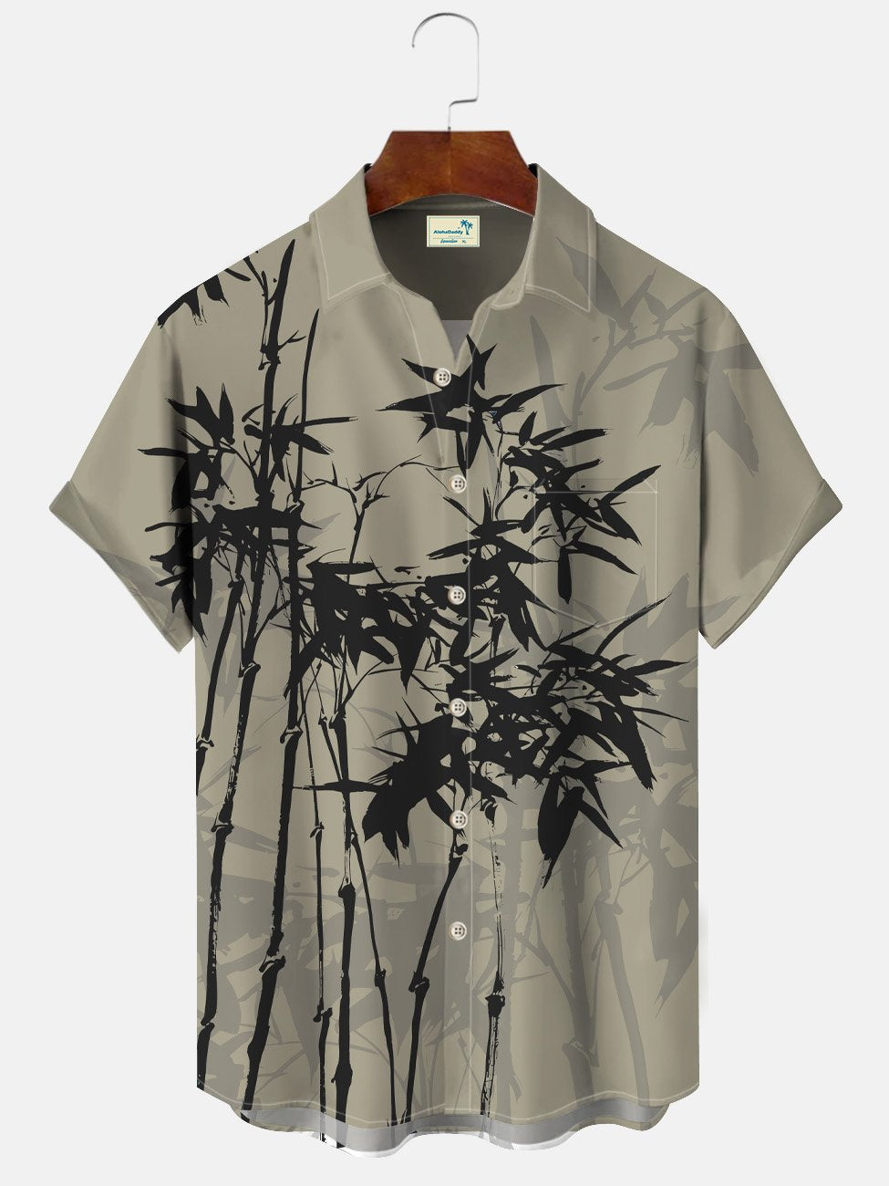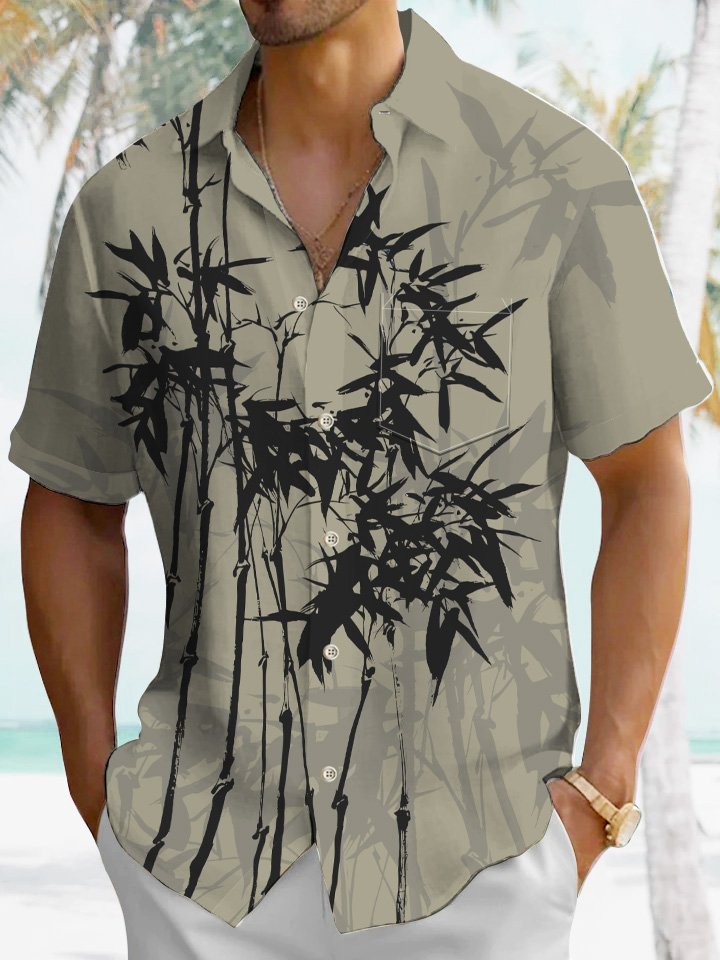 Alohadaddy Summer Plant Bamboo Button Casual Vacation Men's Short Sleeve Shirt
