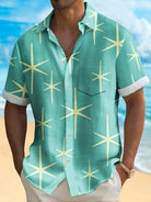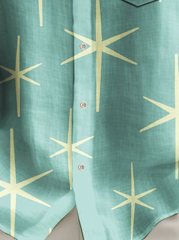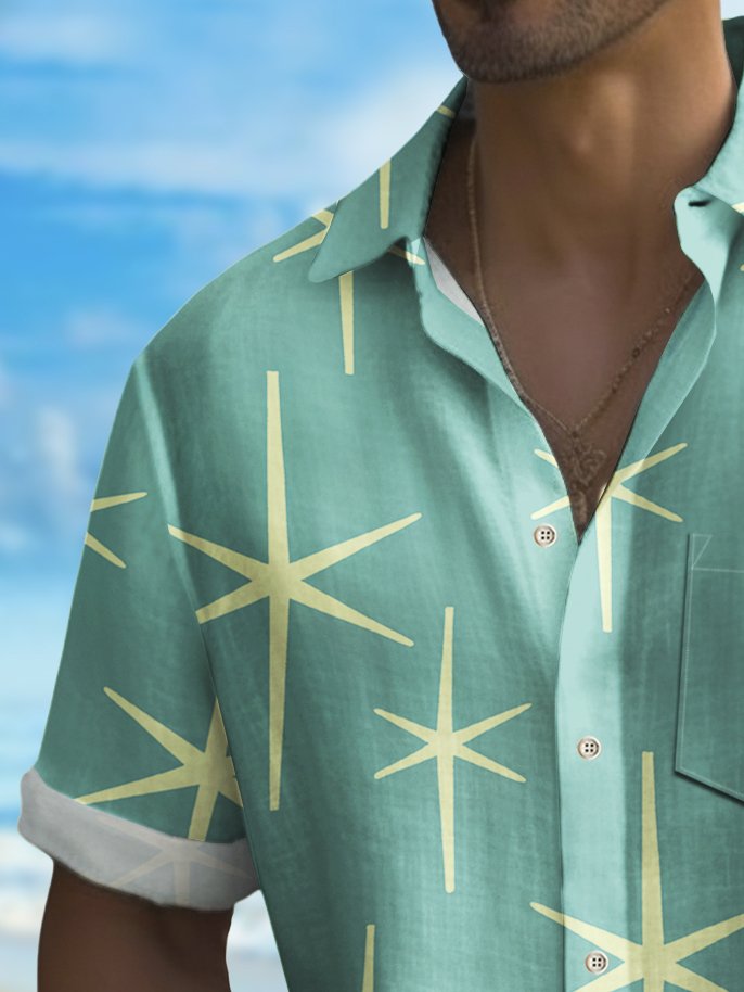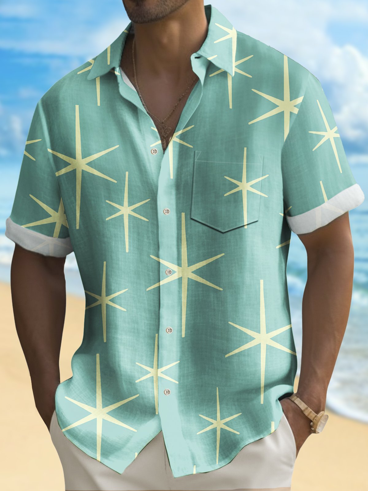 Alohadaddy Vintage Geometric Starburst Print Chest Pocket Shirt Plus Size Men's Shirt