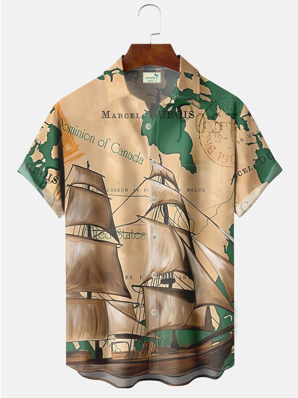 Alohadaddy Vintage Navigation Printed Casual Plus Size Shirts