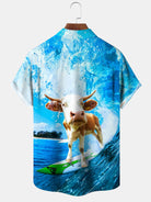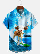 Alohadaddy Wave Animal Cow Button Pocket Casual Short Sleeve Shirt