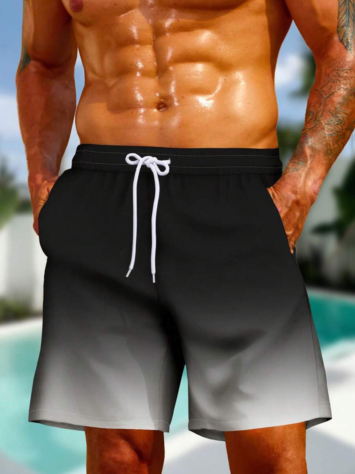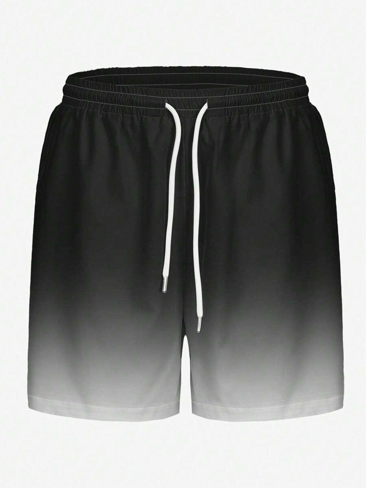 Alohadaddy® Fashion Loose Drawstring Beach Sports Shorts Black and White Gradient Big & Tall
