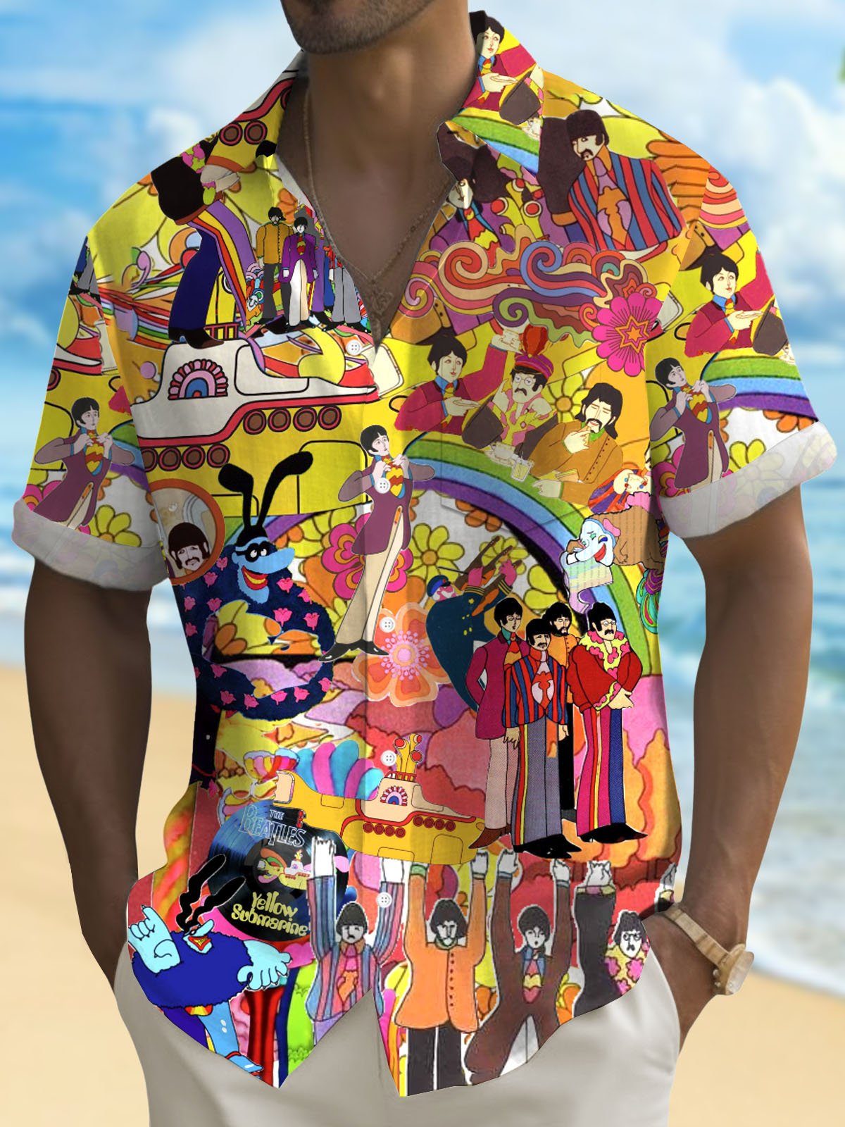 Alohadaddy® Men's Vintage Beatles Music Print Button Pocket Short Sleeve Shirt Big & Tall