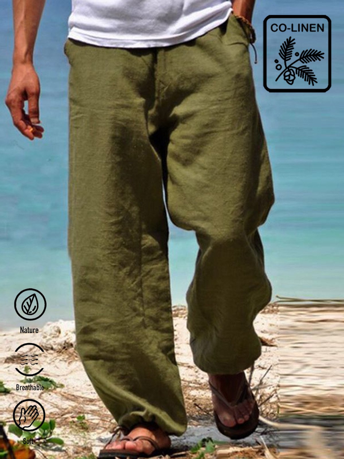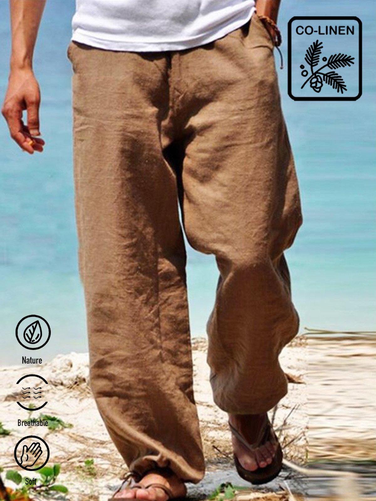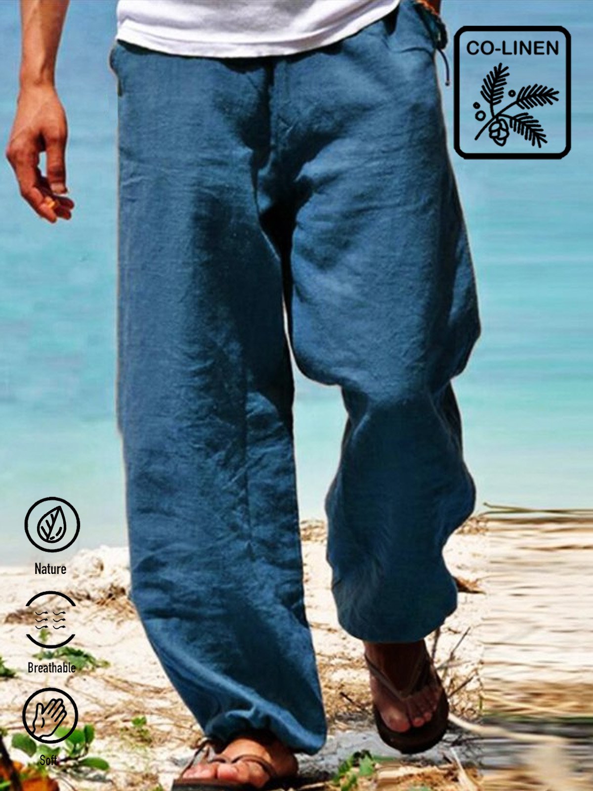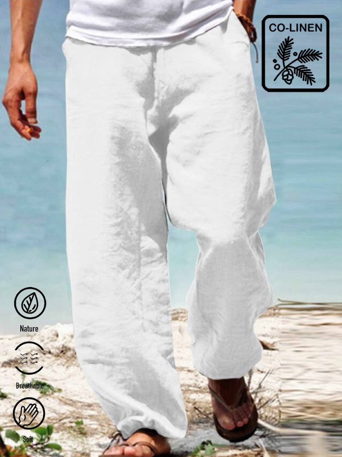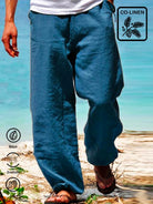 Men's Holiday Casual Cotton Linen Blend Breathable Trousers Seaside Hawaiian Pants
