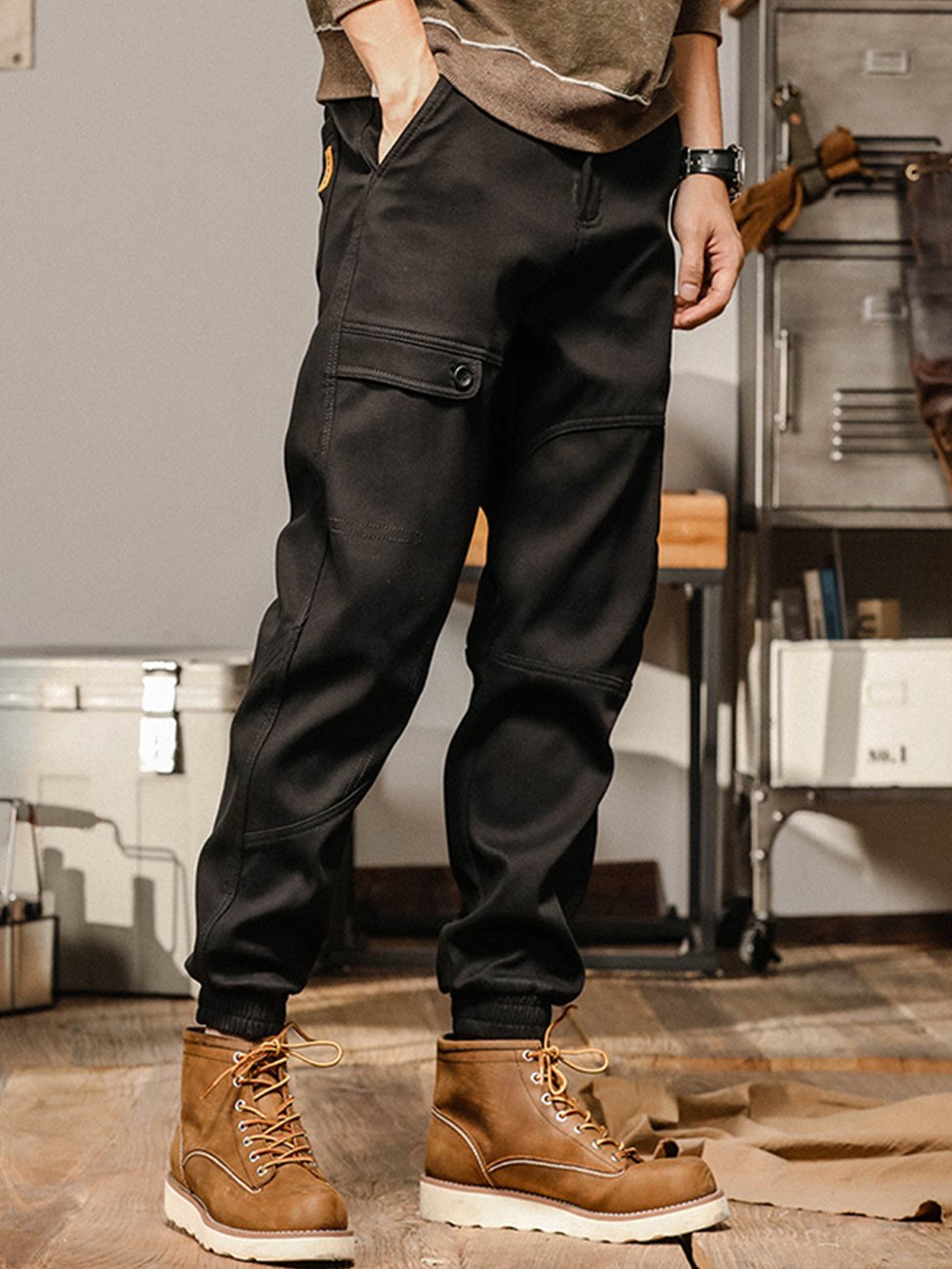 Men's Loose Straight Casual Ankle Banded Cargo Pants