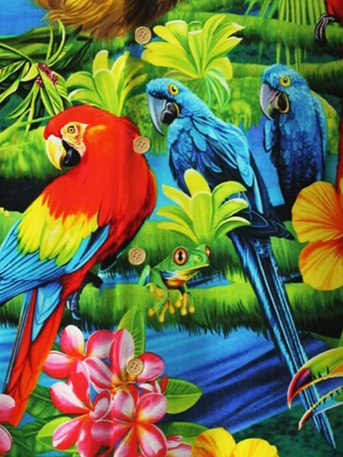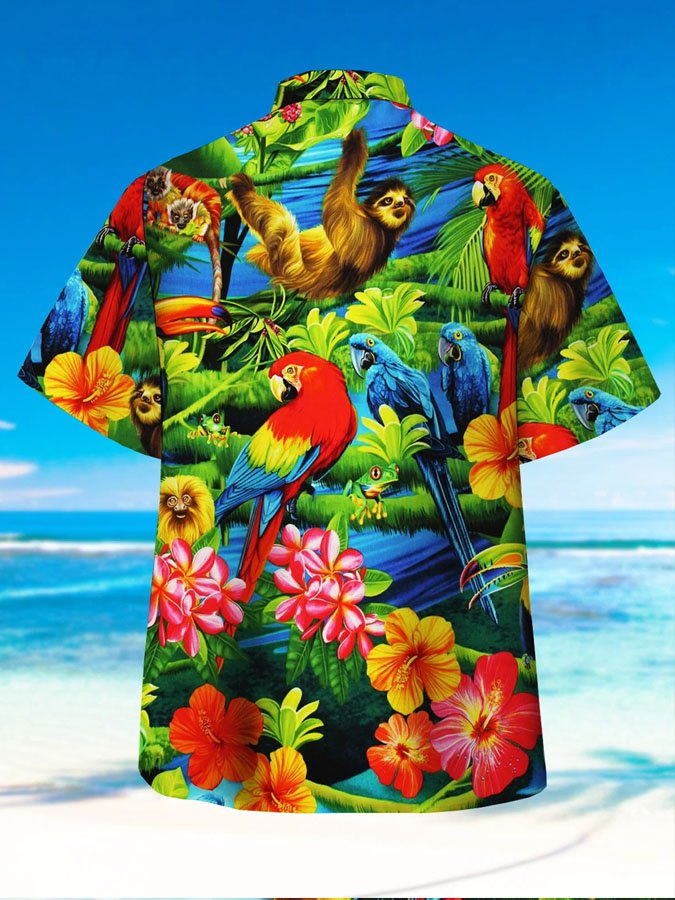 Men's Parrot Print Casual Breathable Hawaiian Short Sleeve Shirt